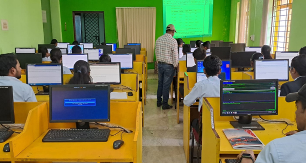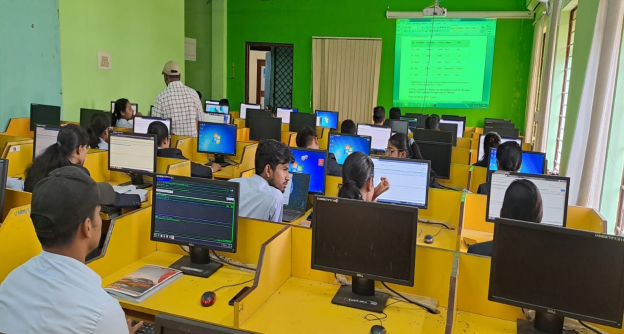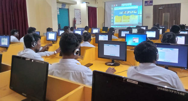 The language laboratory is very useful for improving one’s communication skill. It provides students with the technical tools to get the best samples of pronunciation of the language. The electronic devices used in the laboratory stimulate the eyes and ears of the learner to acquire the language quickly and easily. The laboratory’s collection is designed to assist learners in the acquisition and maintenance of aural comprehension, oral and written proficiency and cultural awareness. The language laboratory offers broadcasting, television programmes, web-assisted materials and videotaped off-air recordings in the target language. In short, a learner can get the experience of having interaction with native speakers through the laboratory; Hence, the language laboratory has become the need of the hour in any language learning process for communication. Through continuous practice students learn how to use English effectively with ease and with minimal interference of mother tongue. Training in soft skills helps them fine tune their capabilities and realize their potentials.